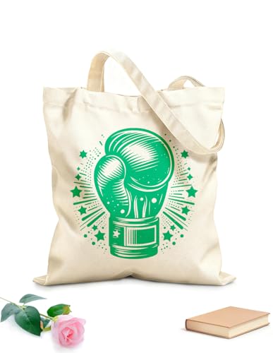 XIARON Reusable Shopping Tote Bag boxing glove emblem with burst of stars and radial lines 340g/m² thick fabric Customizable slogan M Green