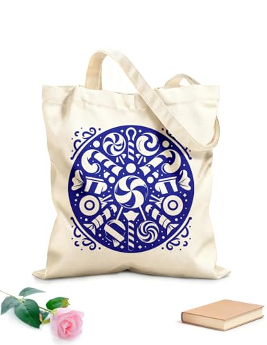 XIARON Cotton Canvas Shopping Bag Complex mandala with radial symmetry 340g/m² thick fabric Uses as a gift bag M Blue