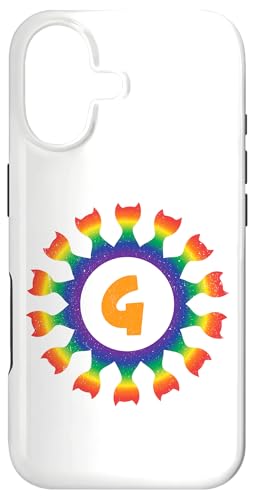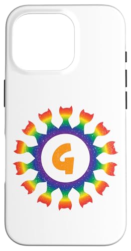 Radial Rainbow Cat Monogram G Design Case for iPhone 16 Pro