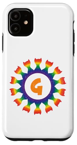 Radial Rainbow Cat Monogram G Design Case for iPhone 11