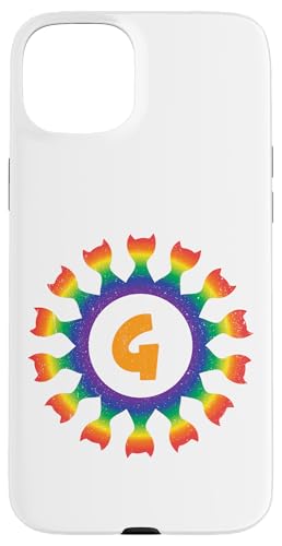 Radial Rainbow Cat Monogram G Design Case for iPhone 15 Plus