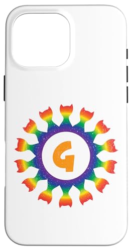Radial Rainbow Cat Monogram G Design Case for iPhone 16 Pro Max