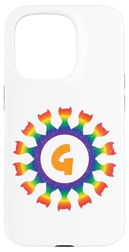Radial Rainbow Cat Monogram G Design Case for iPhone 15 Pro