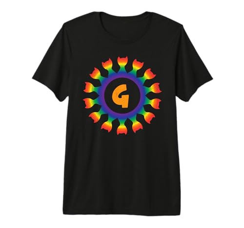 Radial Rainbow Cat Monogram G Design Premium T-Shirt