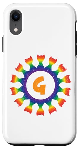 Radial Rainbow Cat Monogram G Design Case for iPhone XR