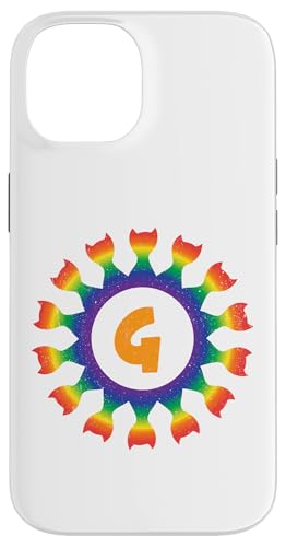 Radial Rainbow Cat Monogram G Design Case for iPhone 15