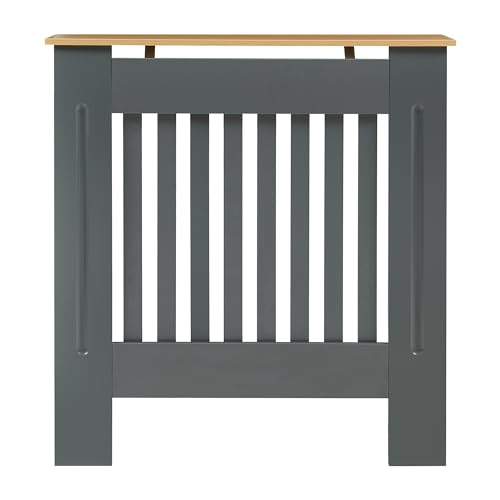 Panana Modern Slatted Radiator Cover, Slatted Cabinet Radiator Covers MDF Wood Cabinet Shelf Heating Covers For Living Room, Hallway (Grey with Wood Top, S)