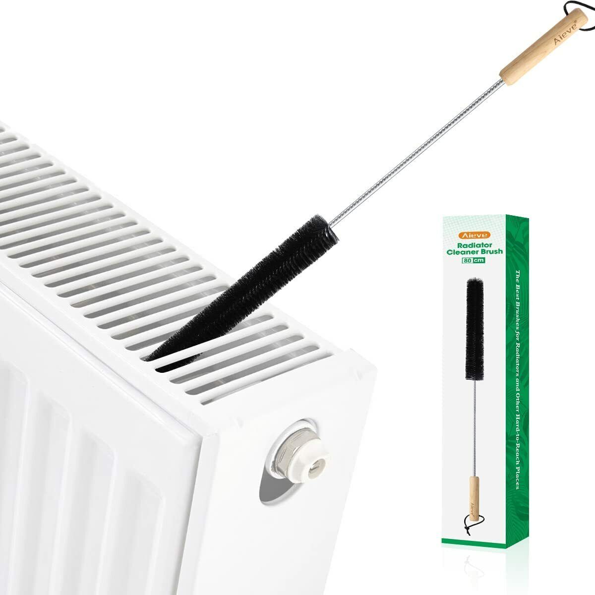 Aieve Radiator Cleaner Brush, 80CM Radiator Brush, Flexible Long Cleaning Duster with Wood Handle for Heater & Dryer Lint & Washing Machine