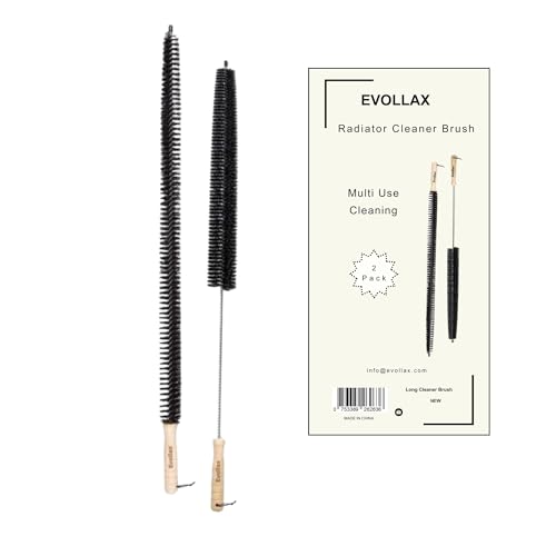 Evollax Radiator Cleaner Brush – 2 Pack Wood Handle Radiator Brush with Hanging Hook Loop | Radiator Cleaning Brush | Radiator Brushes for Cleaning 65 CM | Radiator Cleaner Brush Thin Long Flexible