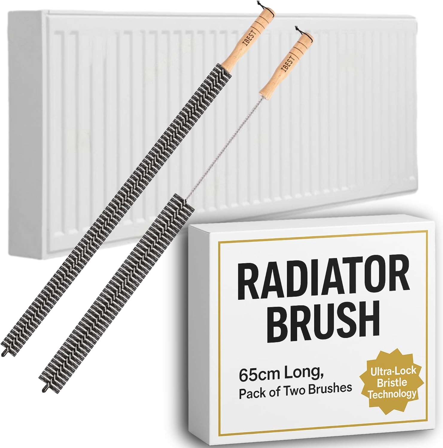 Radiator Brush with Wooden Handle | Pack of 2 Radiator Cleaner Brush with Hangi