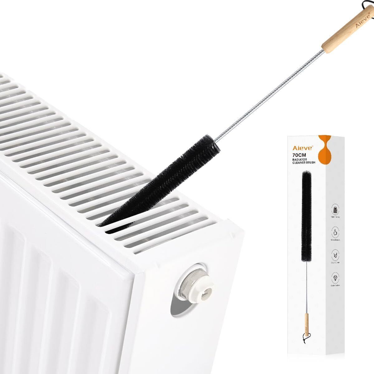 Aieve Radiator Cleaner Brush, 70CM Radiator Brush, Flexible Long Cleaning Duster with Wood Handle for Heater & Dryer Lint & Washing Machine