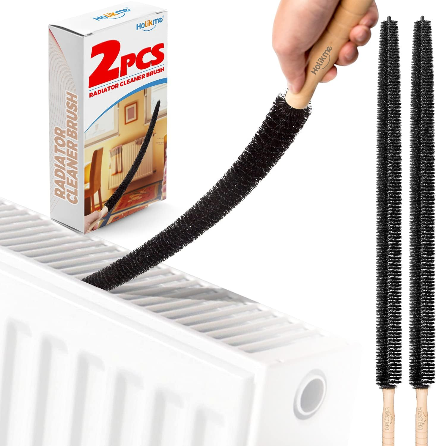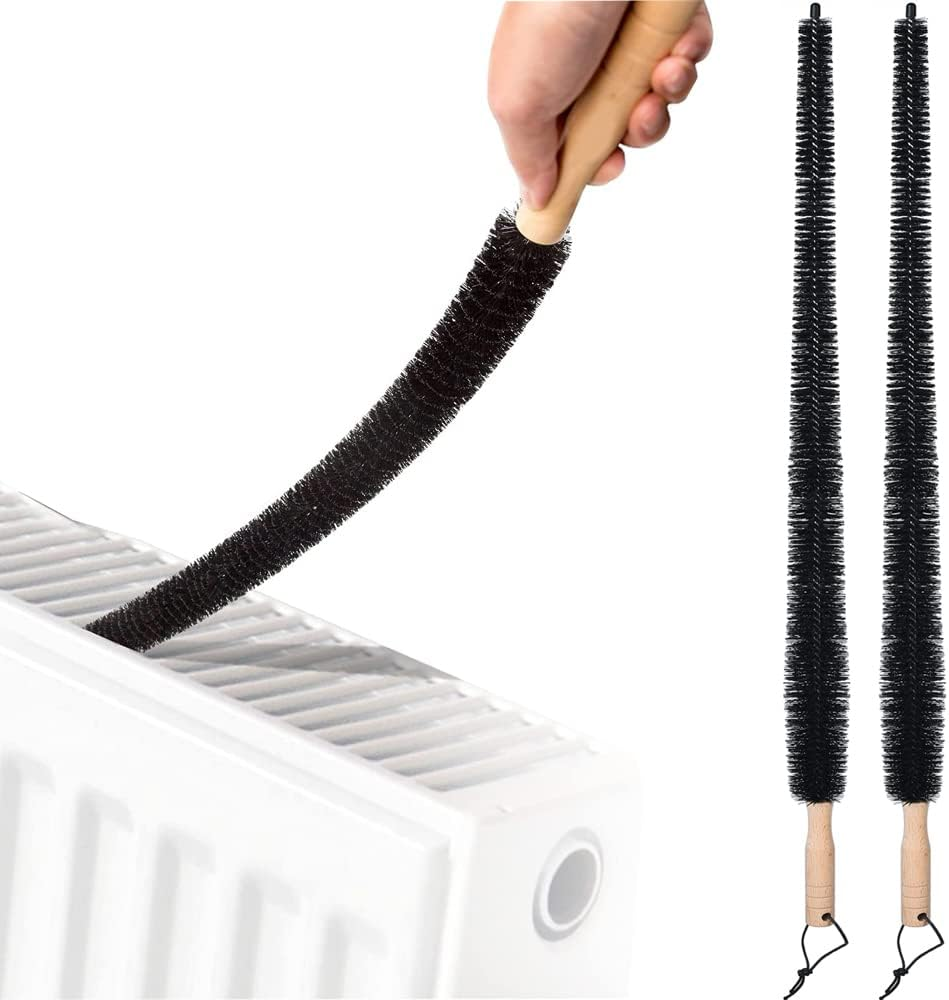 2 Pack Radiator Cleaning Brush, Flexible Long Radiator Duster, Long Flexible with Wooden Handle for Radiator & Dryer Lint & Washing Machine