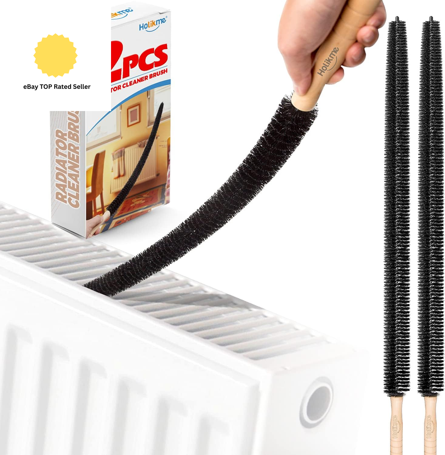 Holikme Radiator Cleaner Brush, 2 Pack Radiator Duster, Long Flexible with Wood Handle, Cleaning Brush for Radiator, Dust Bristle Brush