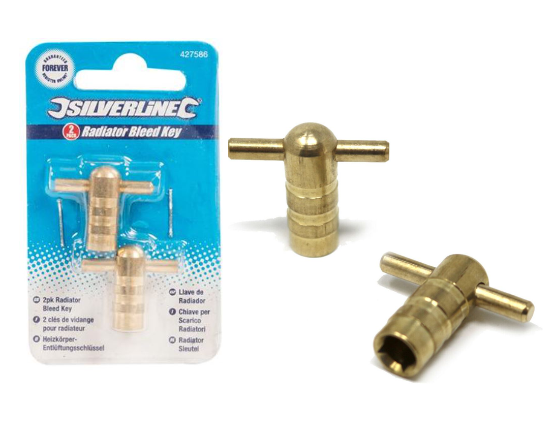 2x Silverline Radiator Plumbing Bleed Bleeding Key Keys Solid Brass Vent S144