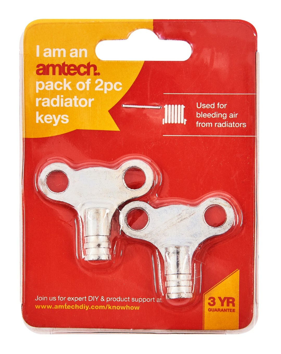 Amtech 2x Solid Radiator Bleed Service Keys Plumbing Tool Key Air Lock Release