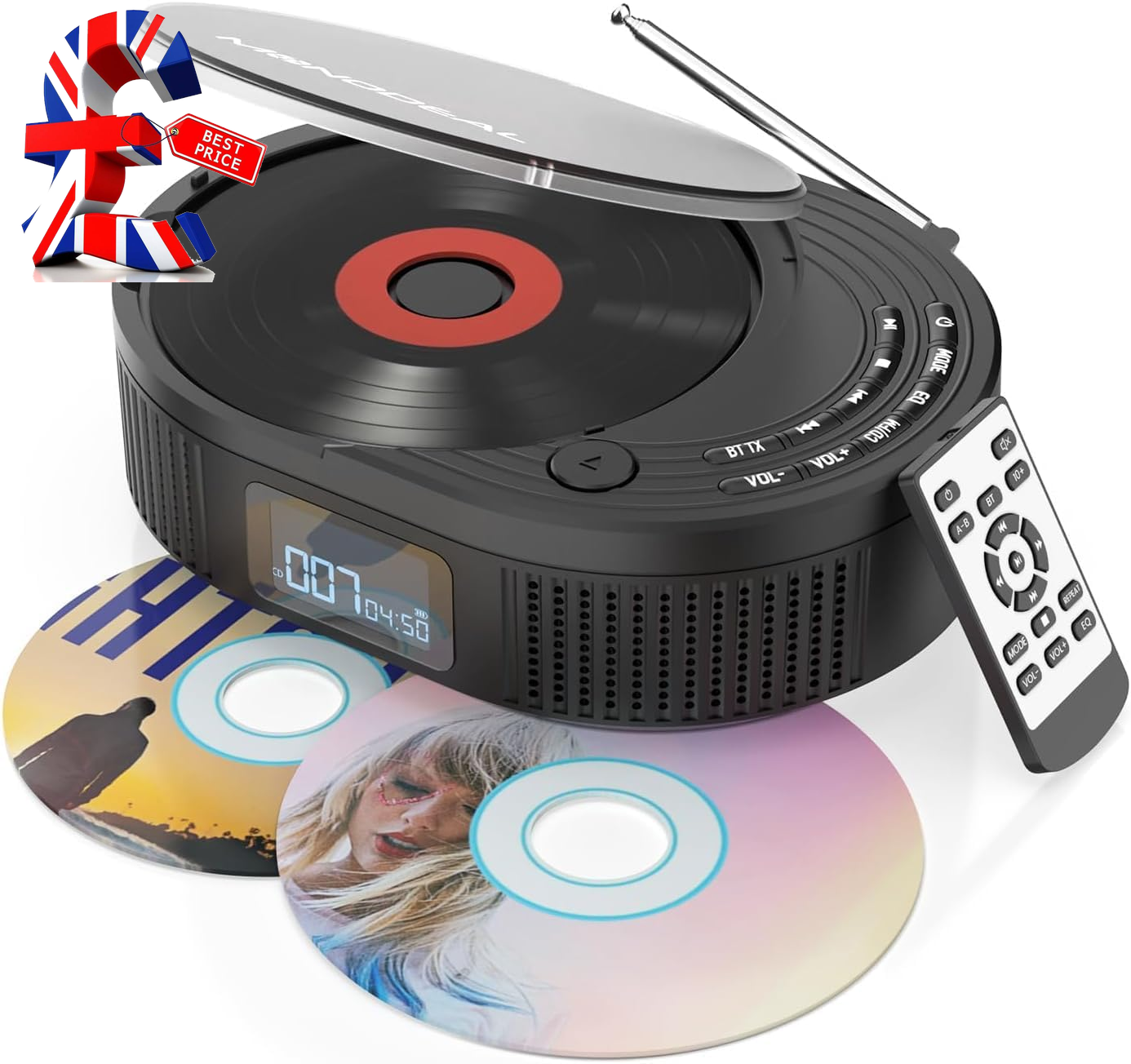 Portable Cd Player With Bluetooth - Wall Mountable Home Audio With Fm Radio And Remote Control Black Friday