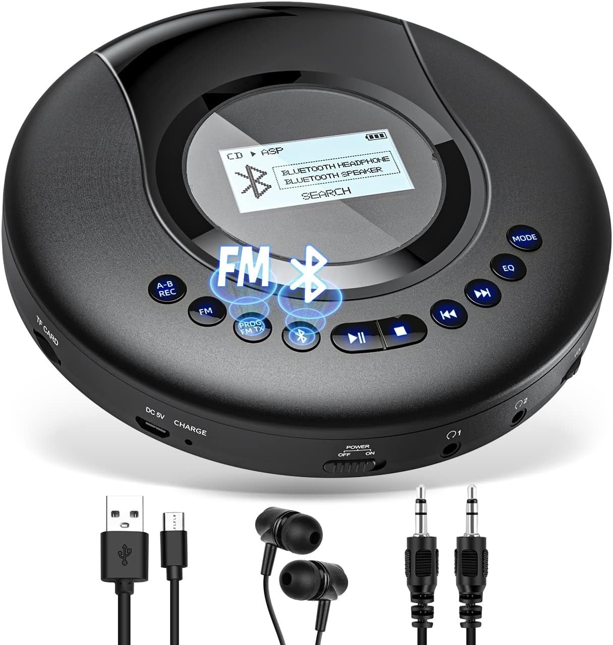 Arafuna Personal CD Player Portable with Bluetooth 5.0, Rechargeable CD/MP3 Player with Built-in Speaker, FM Radio, AUX and Headphone Jack for Car or Home Use