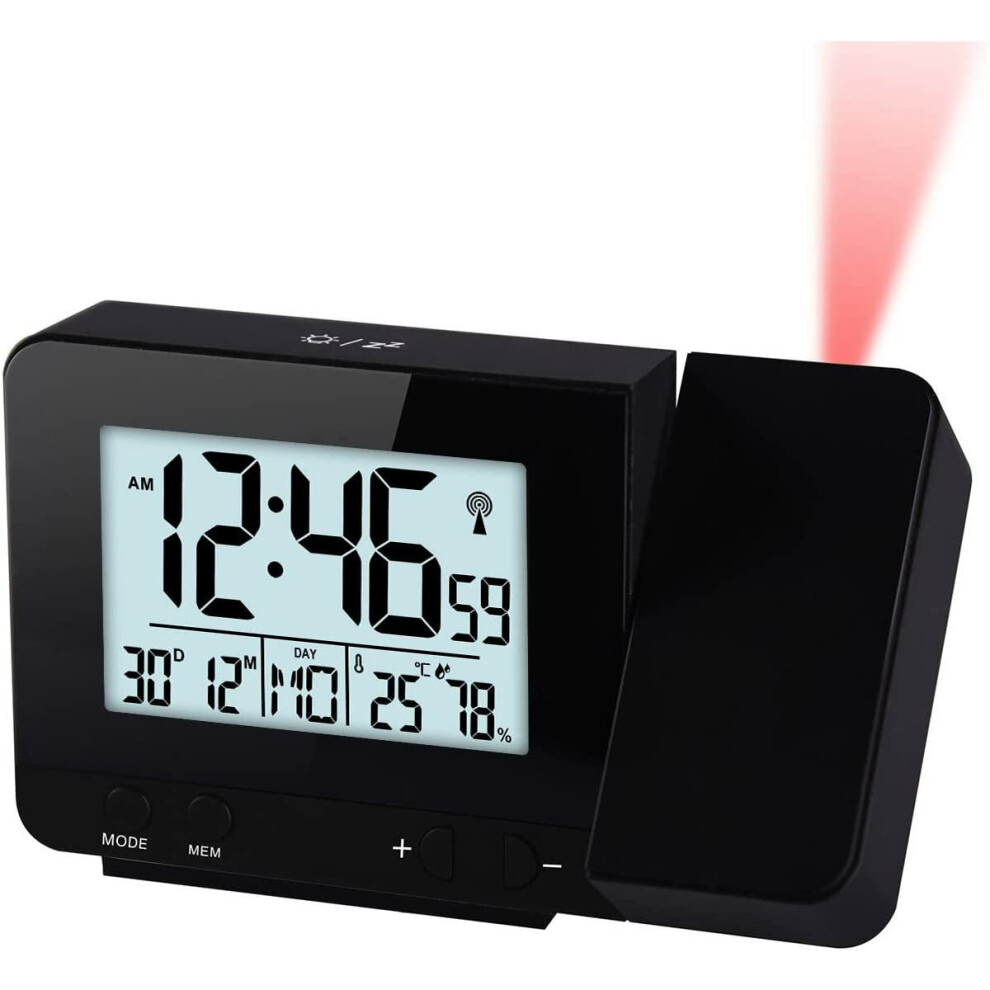 Radio Control (Official 2026 MSF UK Version) Projection Alarm Clock Outdoor Sensor, Weather Station, Bedroom Projector Dimmable Clock Dual Alarms LCD Display Date Time Temperature Humidity