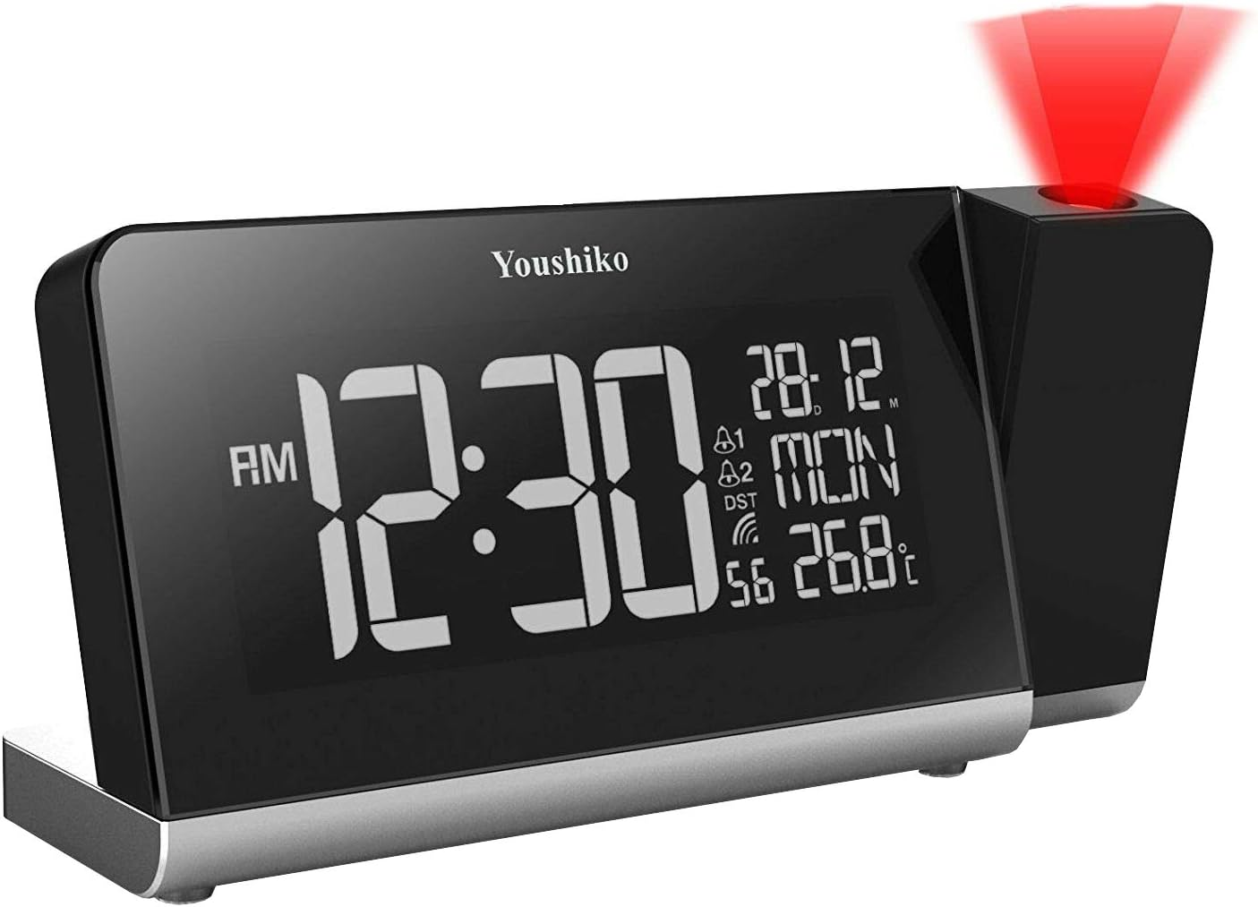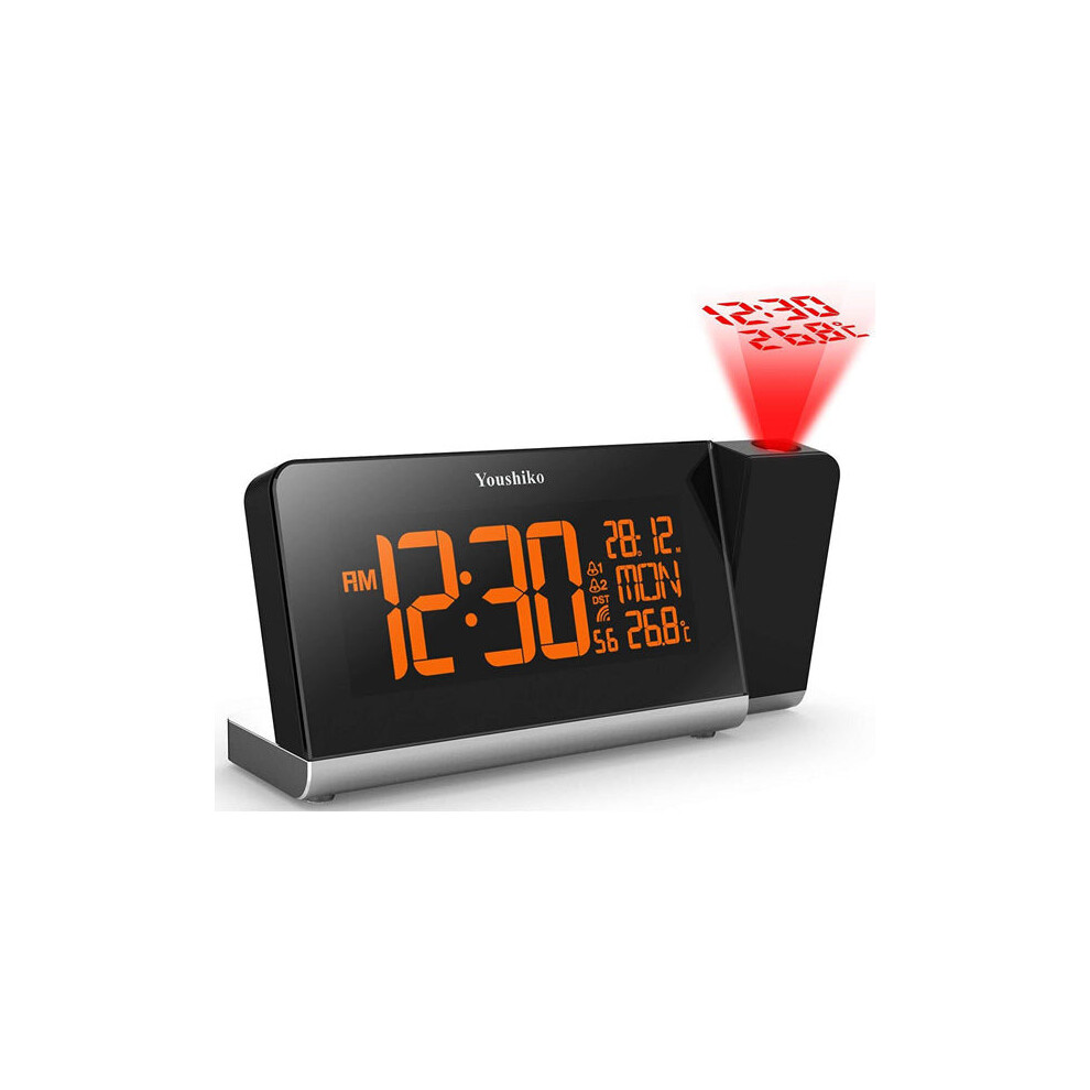 Youshiko Radio Control (Official 2026 MSF UK Version) Projection Alarm Clock, Bedroom Projector Clock Dual Alarms LCD Display Date Time