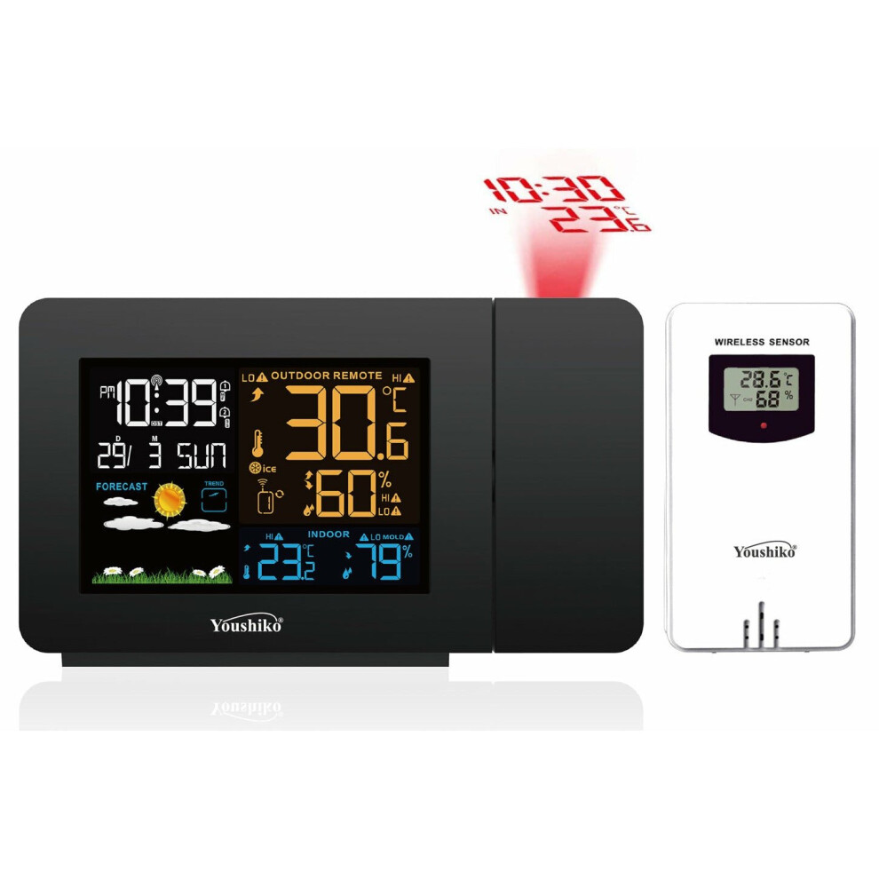 Youshiko Radio Control Projection Alarm Clock Weather Station