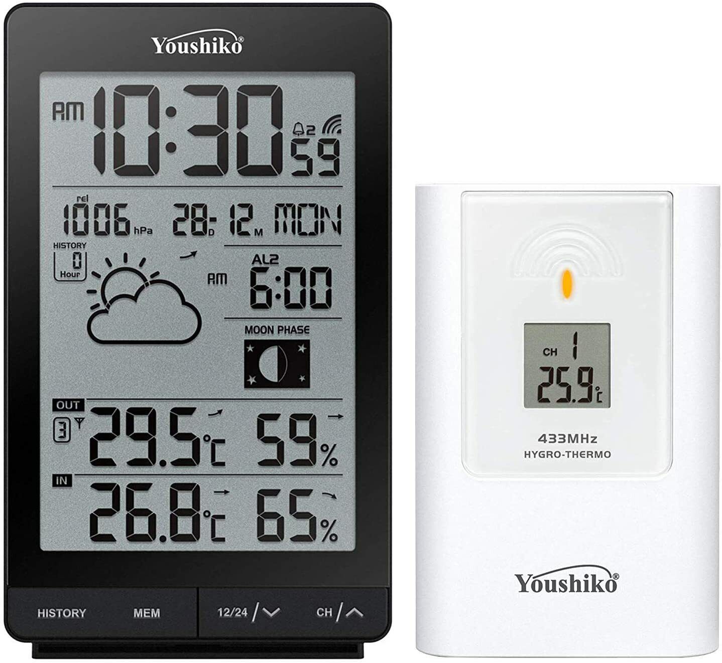 Youshiko YC9331 Weather Station MSF Radio Control Clock UK Indoor Outdoor NEW