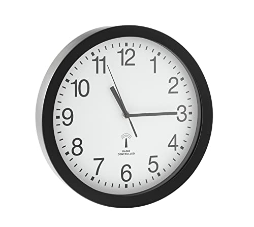 Alco-Albert 194-11 Radio-Controlled Round Wall Clock, 30 cm, Black Frame, White Dial, Pack of 1