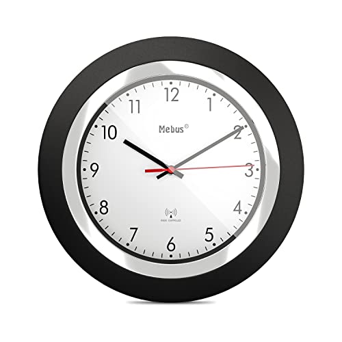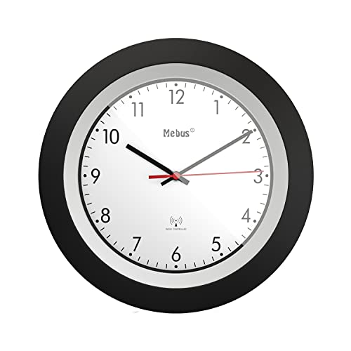 Mebus Radio Controlled Wall Clock with Black Frame Diameter, 25 cm Durchmesser