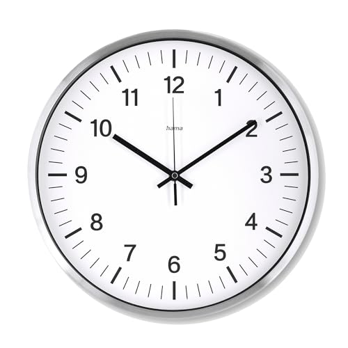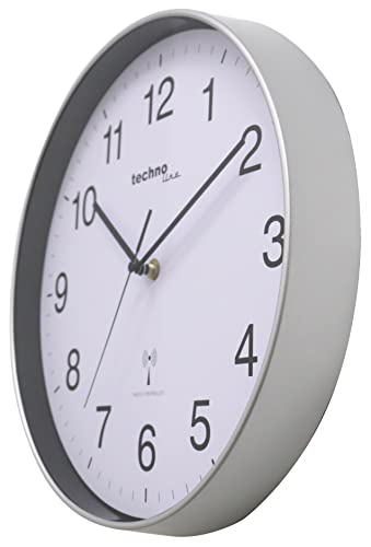 Technoline WT8030 Classic Radio-Controlled Wall Clock Silver Frame White Dial Black Numerals Diameter 30 cm