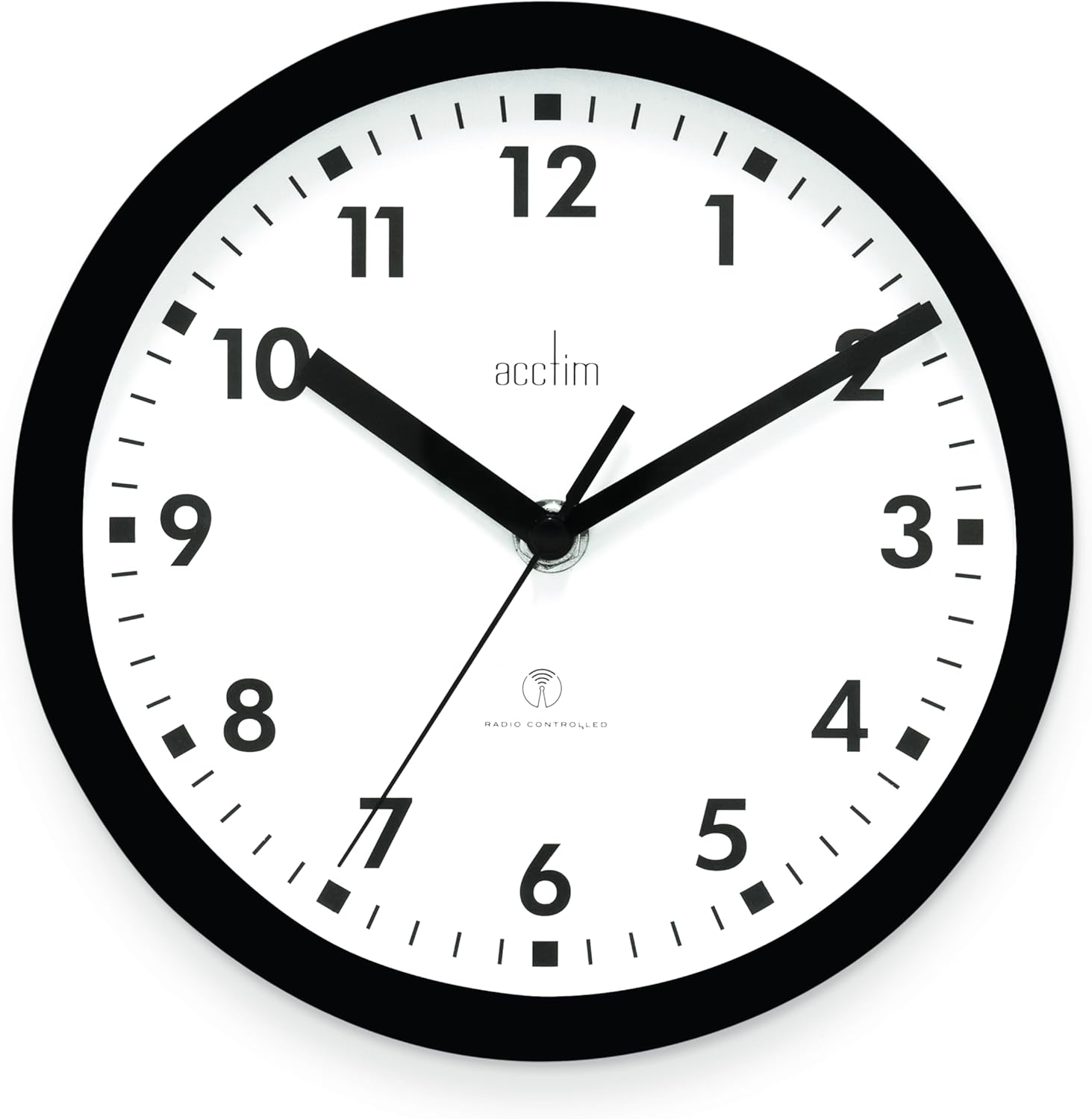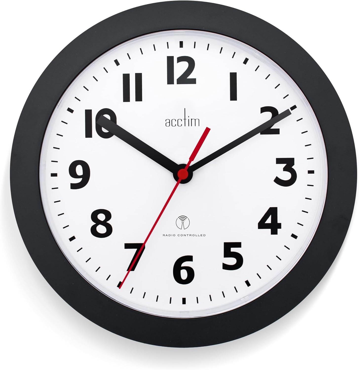 Acctim Round Radio Controlled Black Battery Wall clock 22cm Fairford 85463