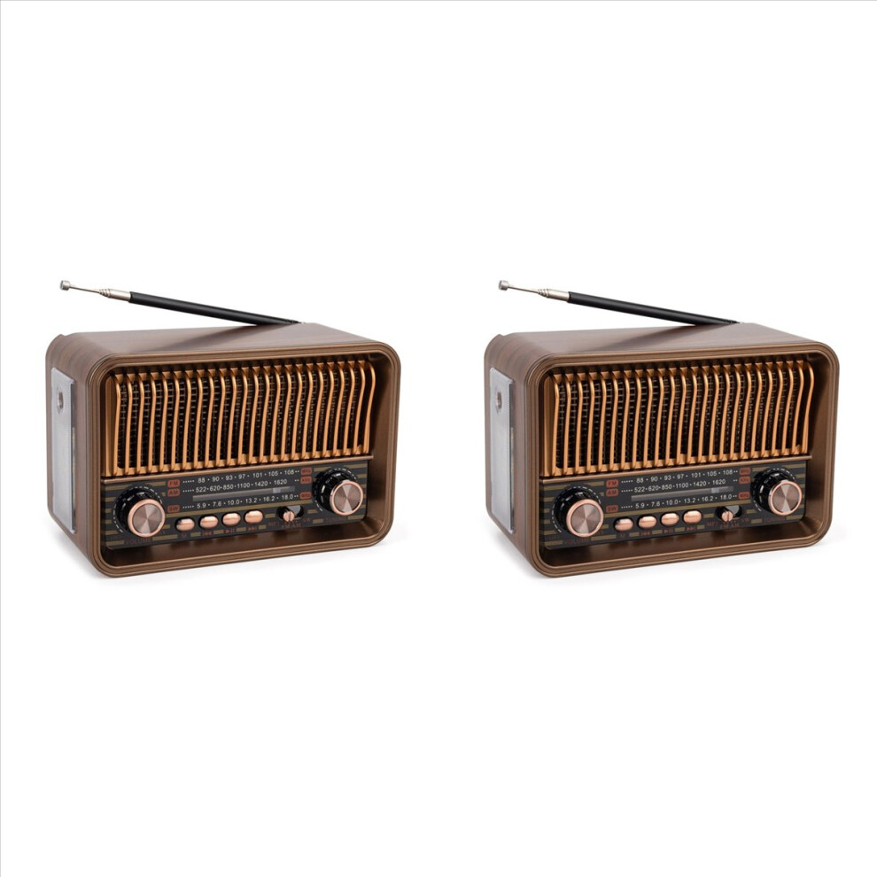 2X(Portable FM AM SW Radio Vintage Radio Bluetooth Speaker with LED5773