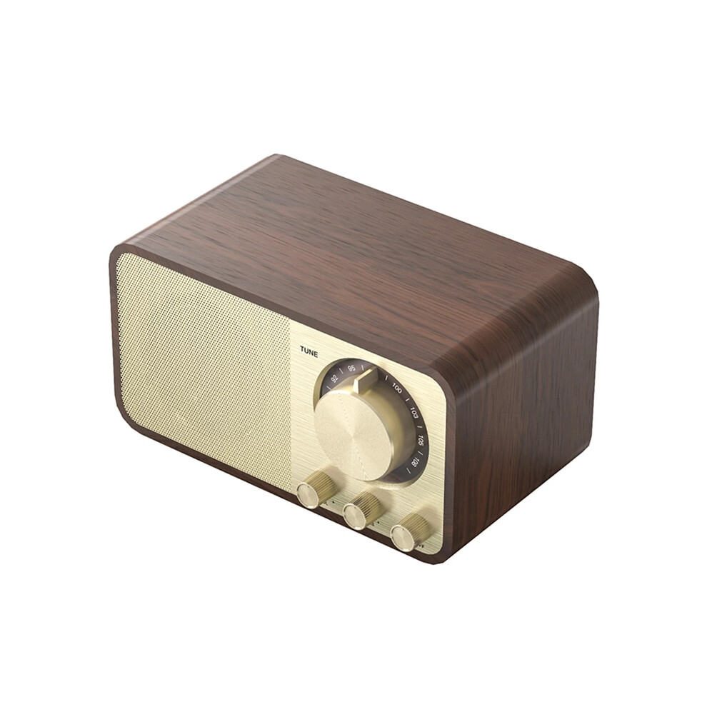 (walnut) Portable Nostalgic Retro FM Radio Walnut Vintage Radio Receiver Wireless Subwoofer Bluetooth Speaker