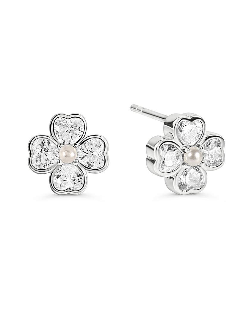 Radley Silver Clear CZ Flower Earrings Silver - Radley