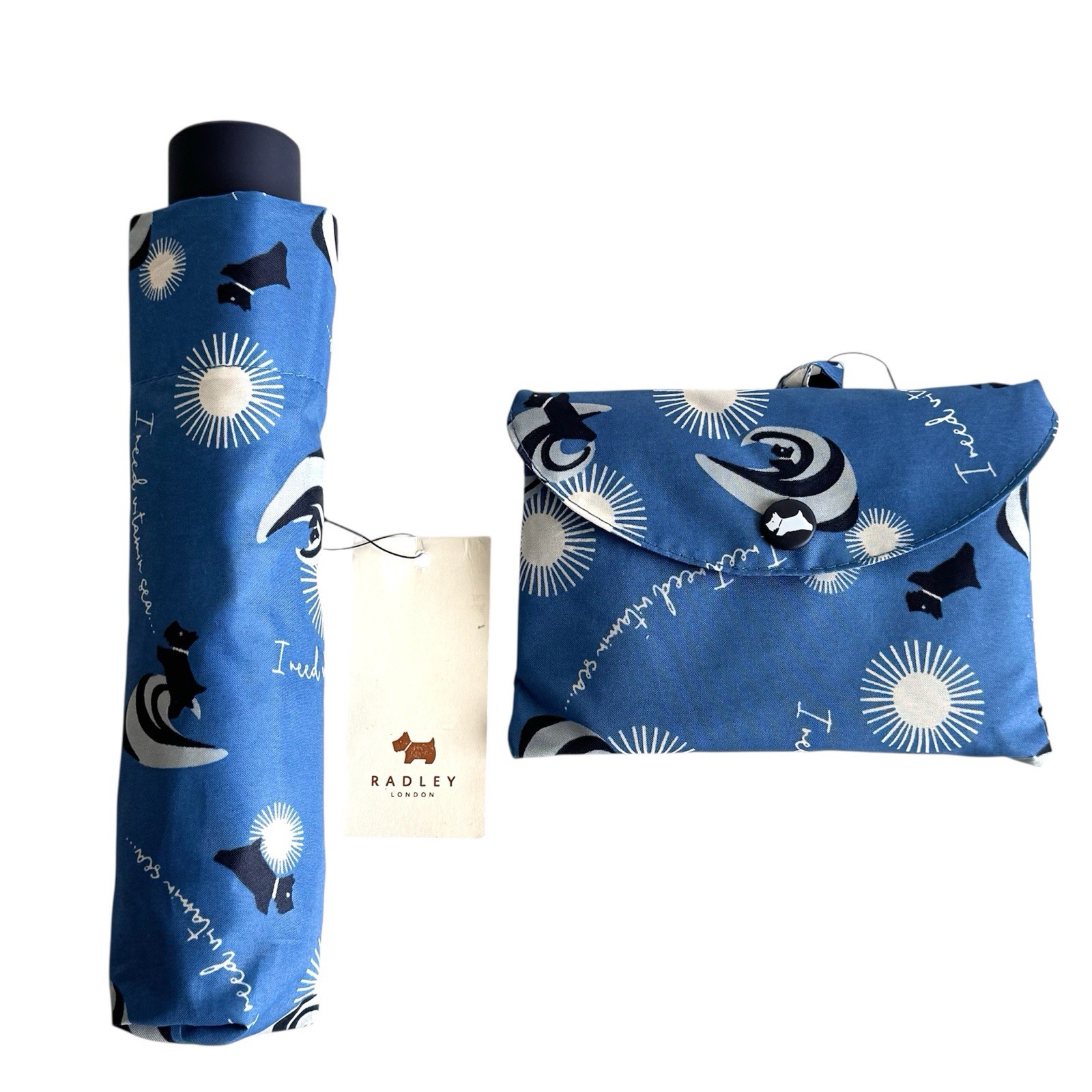 Radley Umbrella Blue Compact Handbag Umbrella And Foldaway Bag I Need Vitamin C