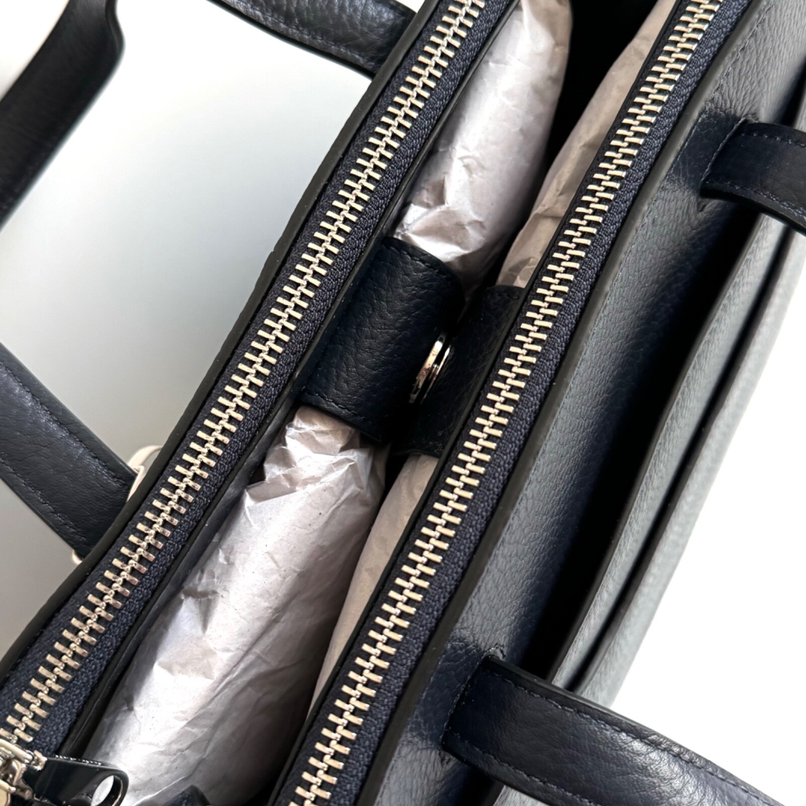 Radley Large Navy Tote Bag Dark Blue Top Zip Babington Plain Leather Handbag