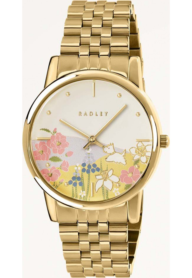 Radley Ladies Watch RY4588A Silver Mesh Bracelet Floral Gold Dial