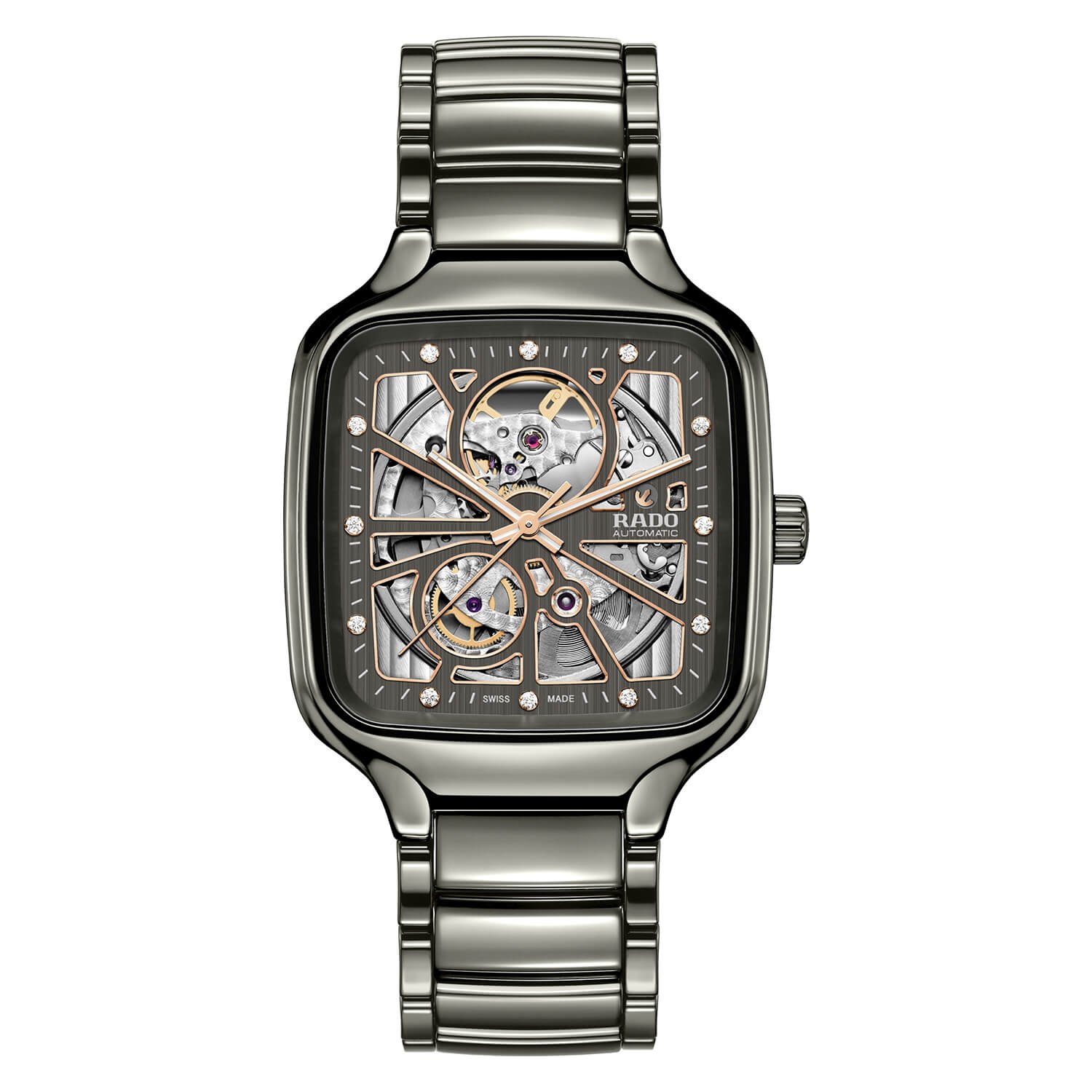 True Sqaure Automatic Open Heart 38mm Skeleton Dial Grey Ceramic Bracelet