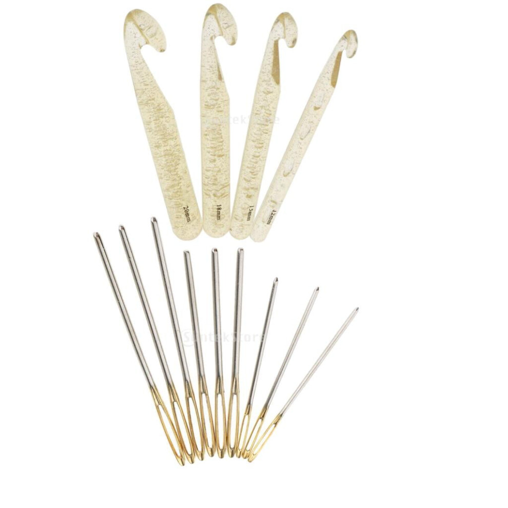 12mm/15mm/18mm/20mm Huge Crochet Hook Set And 9 Pieces Large-eye Blunt Hand Sewing Yarn Knitting Crochet For Rag Rugs,Shawl An