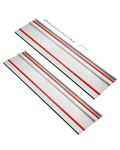VEVOR Track Saw Guide Rail, 55 in Cutting Range, Includes 2 PCs 27.5 in Aluminum Extruded Guide Rails and 1 Connector, Compatible with Makita, Festool & Wen Track Saws, for Woodworking Longer Cuts