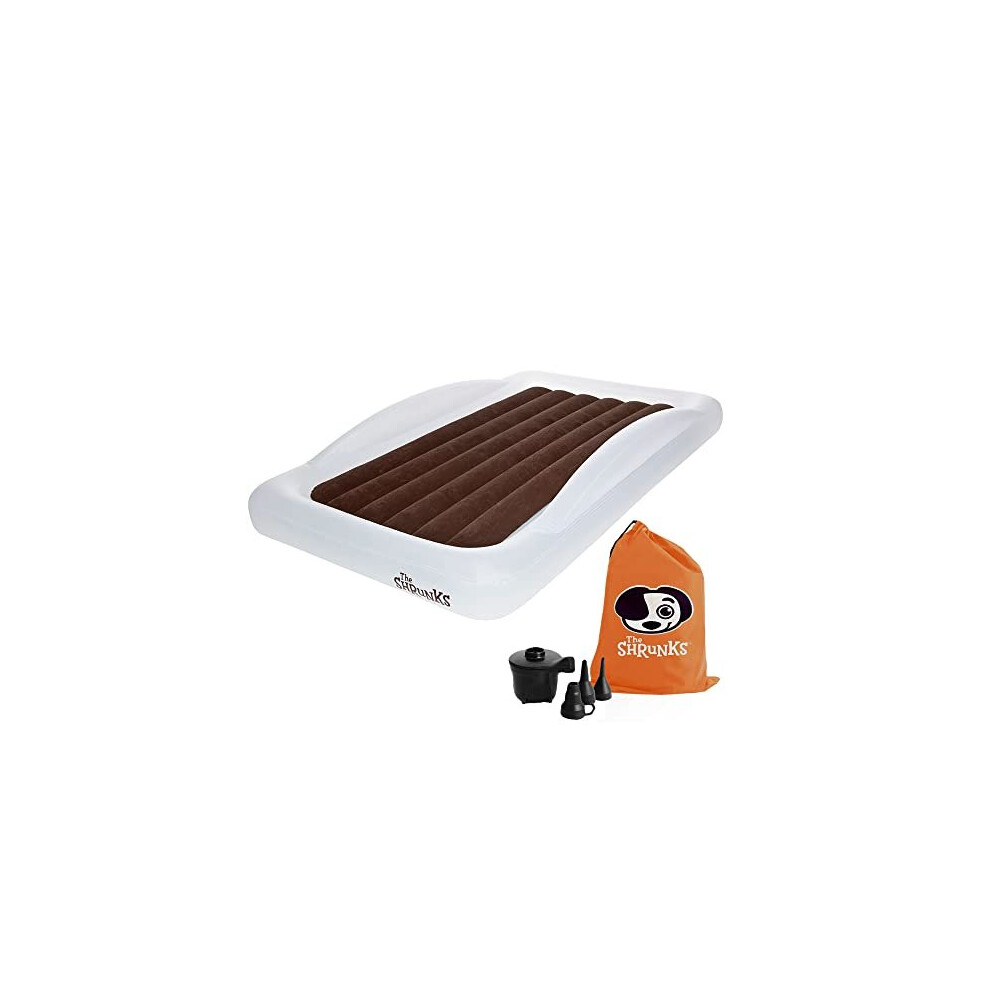 The Shrunks Toddler Travel Bed Portable Inflatable Air Mattress Bed for Travel or Home Use, White, Kids Air Bed for Camping and Sleepover with Security Rails and Electric Pump 152 x 94 x 23cm