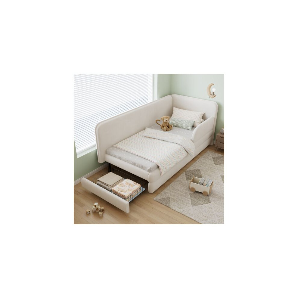 FammyLoft 3ft Single Bed with Side Rails, Upholstered Bed with a Drawer at the Footboard for Bedroom, Velvet + Plywood, 90 * 190cm, Beige (No Mattresses)