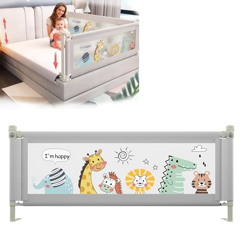 EAQ Toddlers Bed Rails Bed Guard for Single Bed Multi Gear Adjustable Height Seamless Press Guard rail Kids Great Fit Full-Size Queen & King Mattress (ZOO, 190cm)