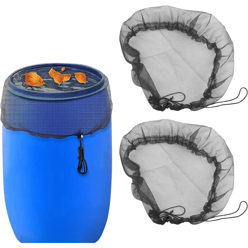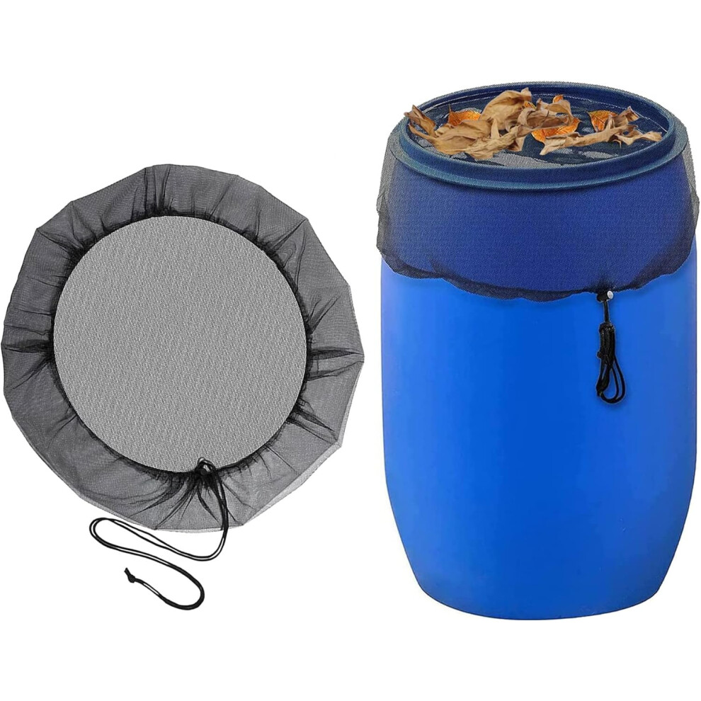 2 Pack 39" Mesh Cover for Rain Barrel Water Collection Buckets Netting with Drawstring Fine Mesh Water Barrel Cover Black Reusable Rain Bucket Filter Screen for Outdoor Garden Preventing Fallen Leaves
