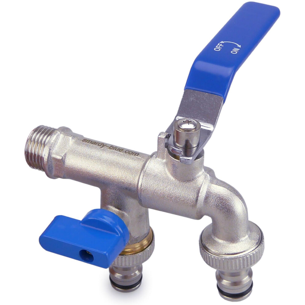 SMARDY Dual water tap 1/2" x3/4" x3/4" ? rust-/ frost-proof with 2x hose connections for garden, rain barrel or washing machine