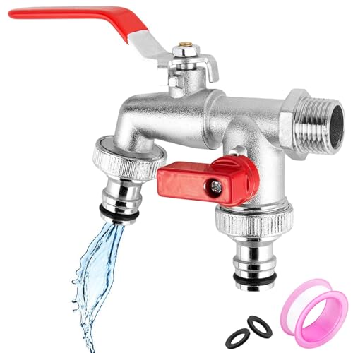 Double Garden Tap, 1/2 Inch Double Water Tap with 1/2 inch Red Outdoor Faucet Taps and 2X3/4 inch Outlet Doubles Garden Water Faucet for Gardens Washing Machine Rain Barrel(Red)