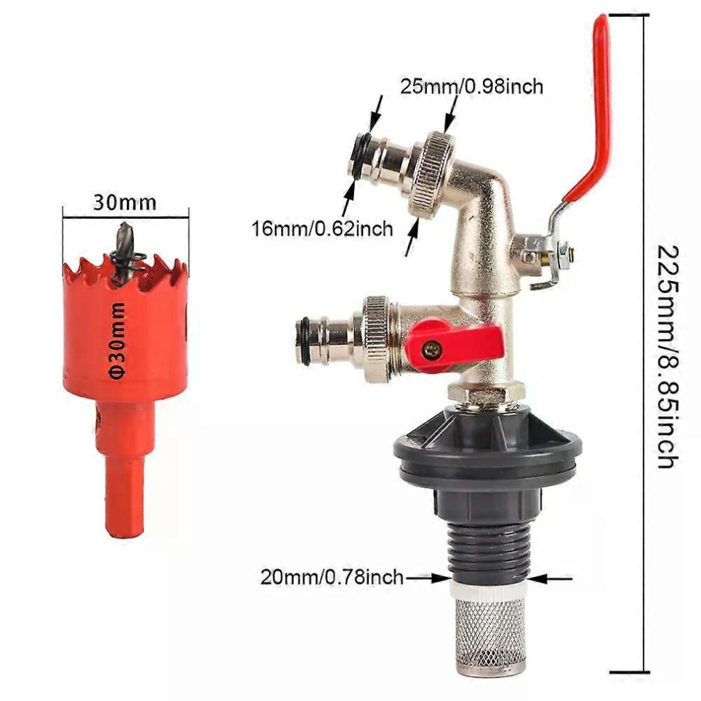 (A) 1Pc 1/2 Rain Barrel Turn Ball Valve Spigot With 2-Way Garden Hose Irrigation Faucet Adapter For Water