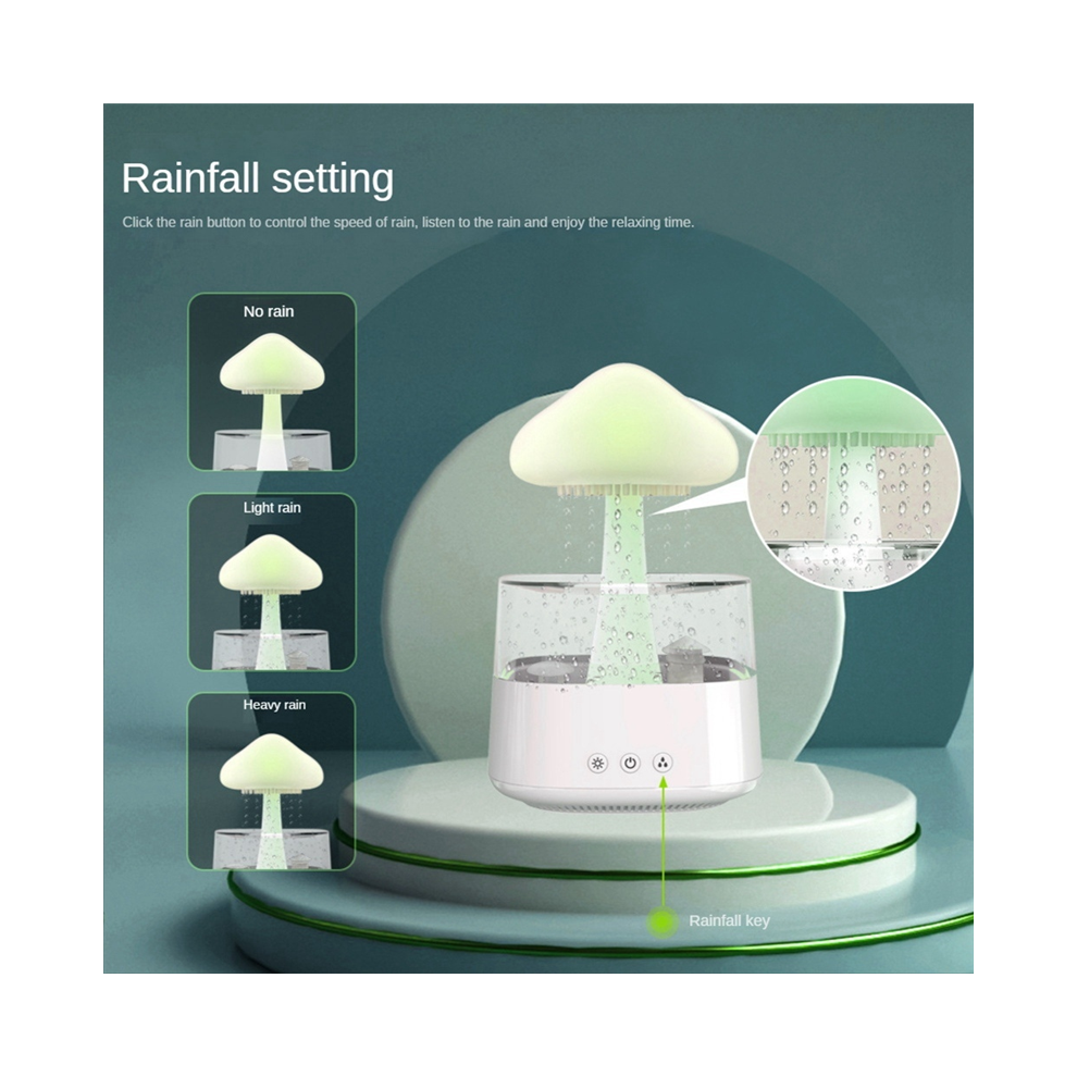 Mushroom Rain Air Humidifier Electric Aroma Diffuser Rain Cloud Smell Distributor Relax Calming Water Drops Sounds Night Lights
