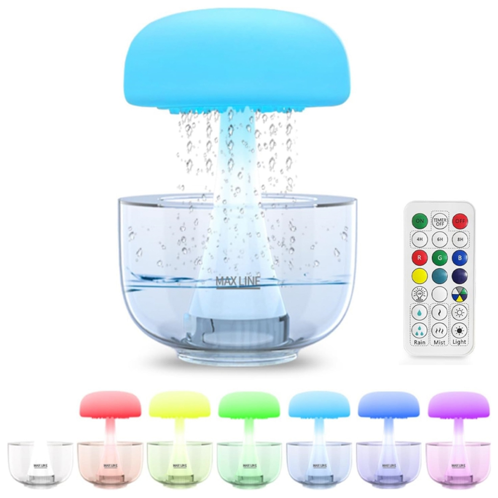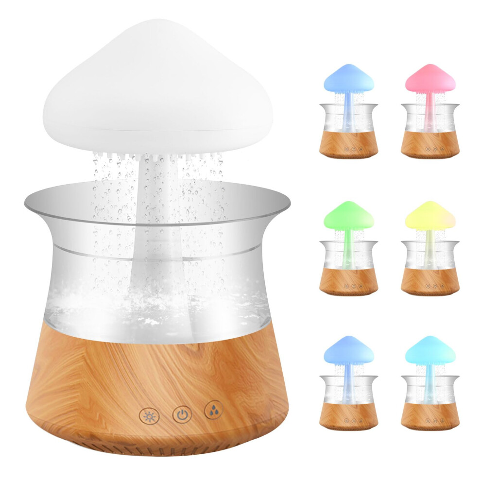 Rain Humidifier With 7 Colors LED Lights Water Drip Mushroom Mist Diffuser