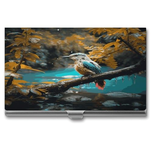 VstaDank Relaxing Rain And Birds Sounds Business Card Holder Aluminum Alloy Compact Portable Card Box Flip Cover Fashionable Lightweight Cards Case Wallet Credit Cards ID Case Holder for Men Women