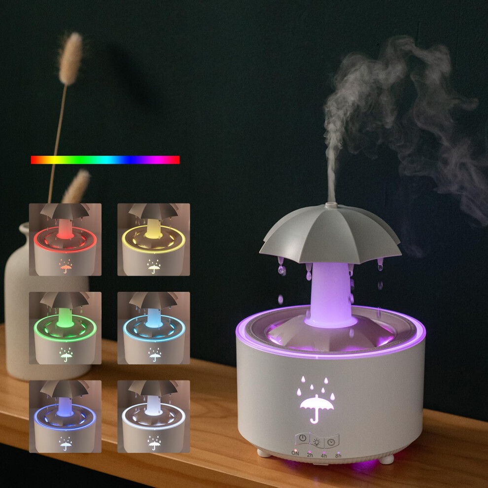 Rain Umbrella Humidifier Aroma Diffuser with Soothing Rain Sounds, 7 Colors Mood Light