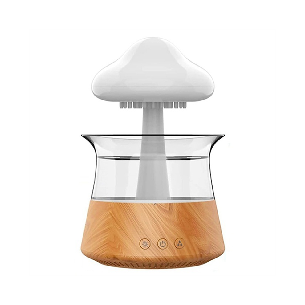 Rain Cloud Humidifier with Water Drip and Rain Sounds, Mushroom Design, Wood Finish, Desk Humidifier for Office Use